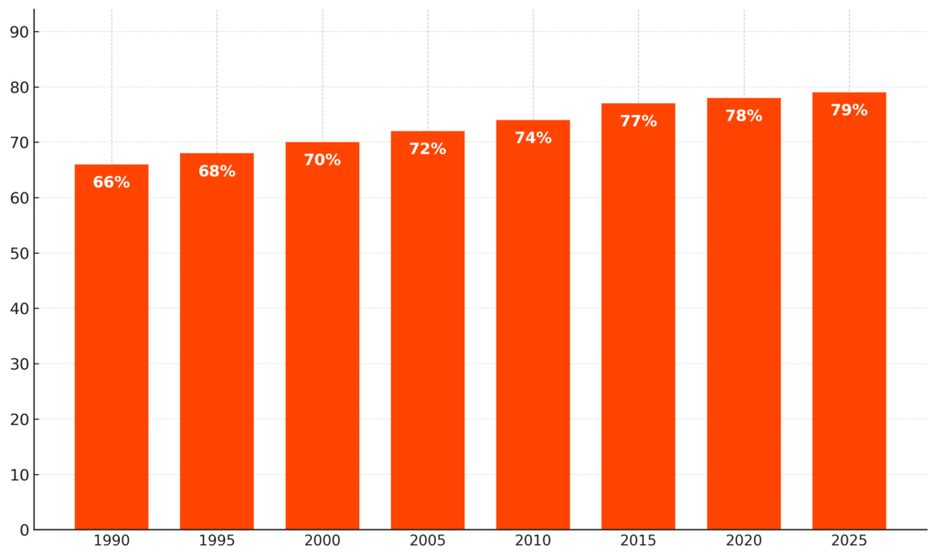 Доля городского населения в Беларуси (1990-2025 годы)